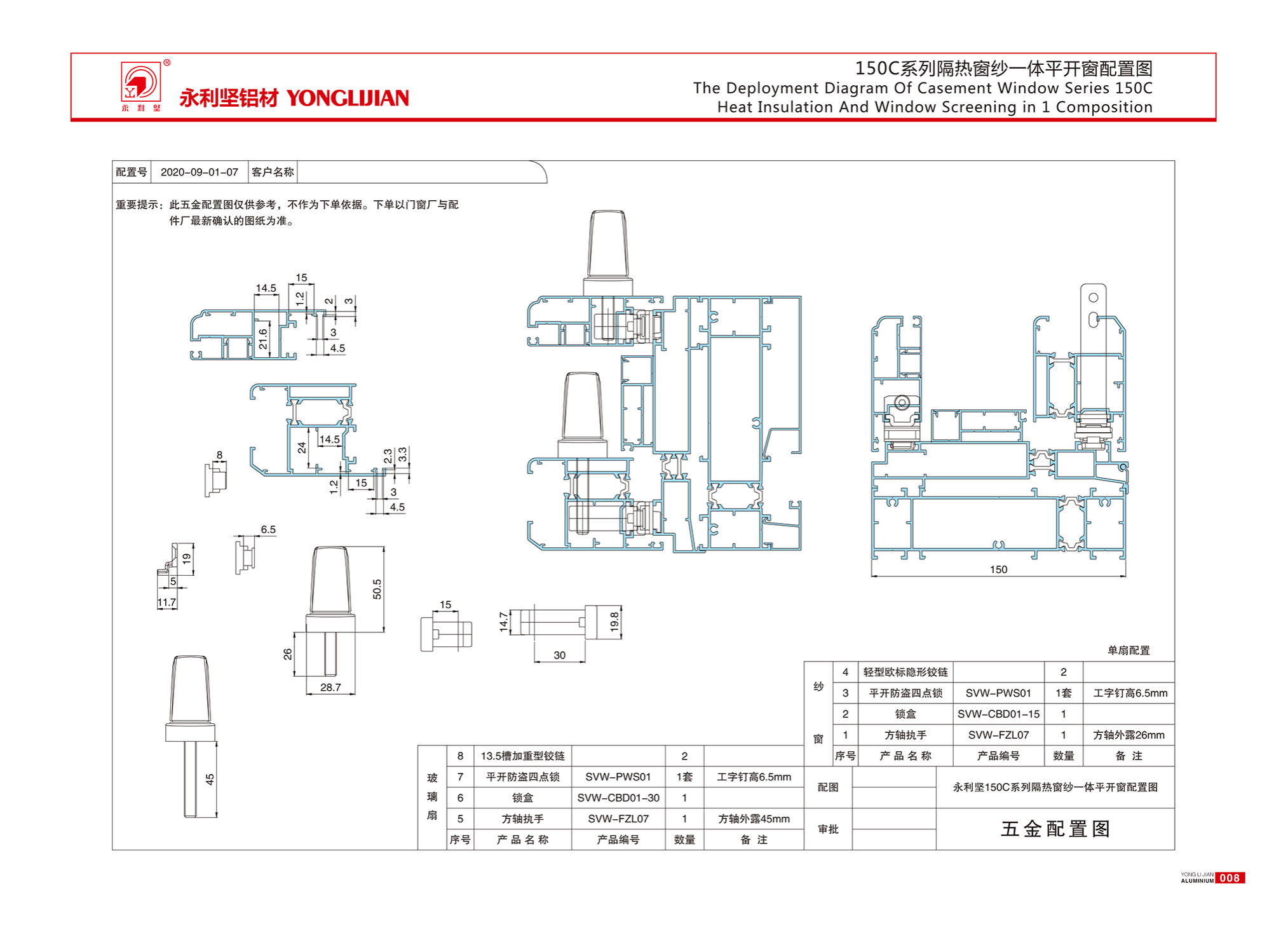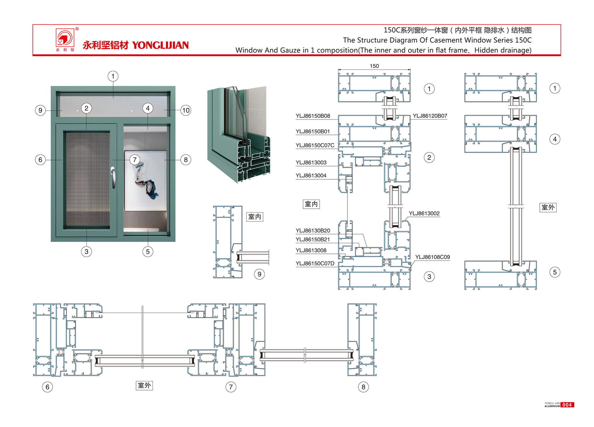 150C series heat insulation window screen integrated window (inner and outer flat frame, hidden drainage)