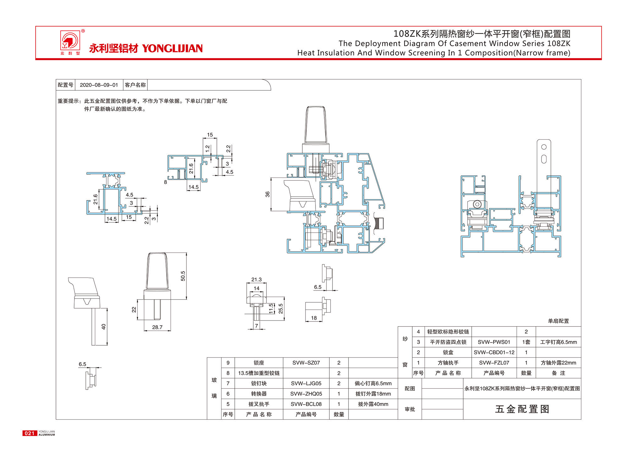 108ZK系列窄框隔熱窗紗一體平開窗